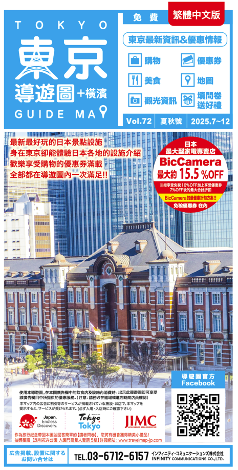 日本發行量No.1的中文城市地圖「導遊圖系列」:「東京導遊圖 繁體中文版」,於2025年6月底發行夏秋號囉!設置於機場、飯店、觀光諮詢服務處等地方,歡迎前往索取(免費)!更多跟日本觀光有關、好吃好玩的資訊都在「日本導遊圖系列」的官方Face...