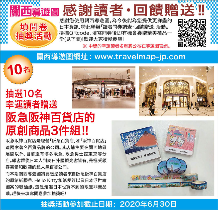 ※抽獎活動報名已截止。即日起至2020年6月30日,只要填寫「讀者調查問卷」,就有機會抽選獲贈阪急阪神百貨店的原創商品3件組!!